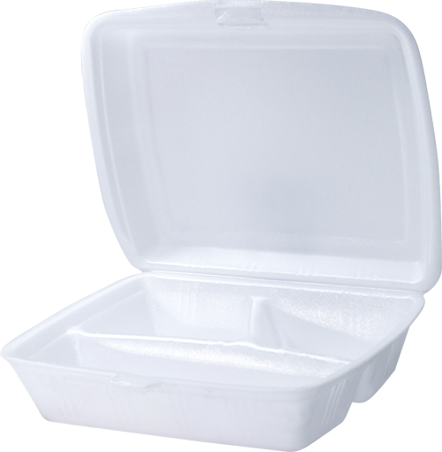 Polystyrene (PS) - PS goes into meat trays, egg cartons, plates, cutlery, carry-out containers, and clear trays.